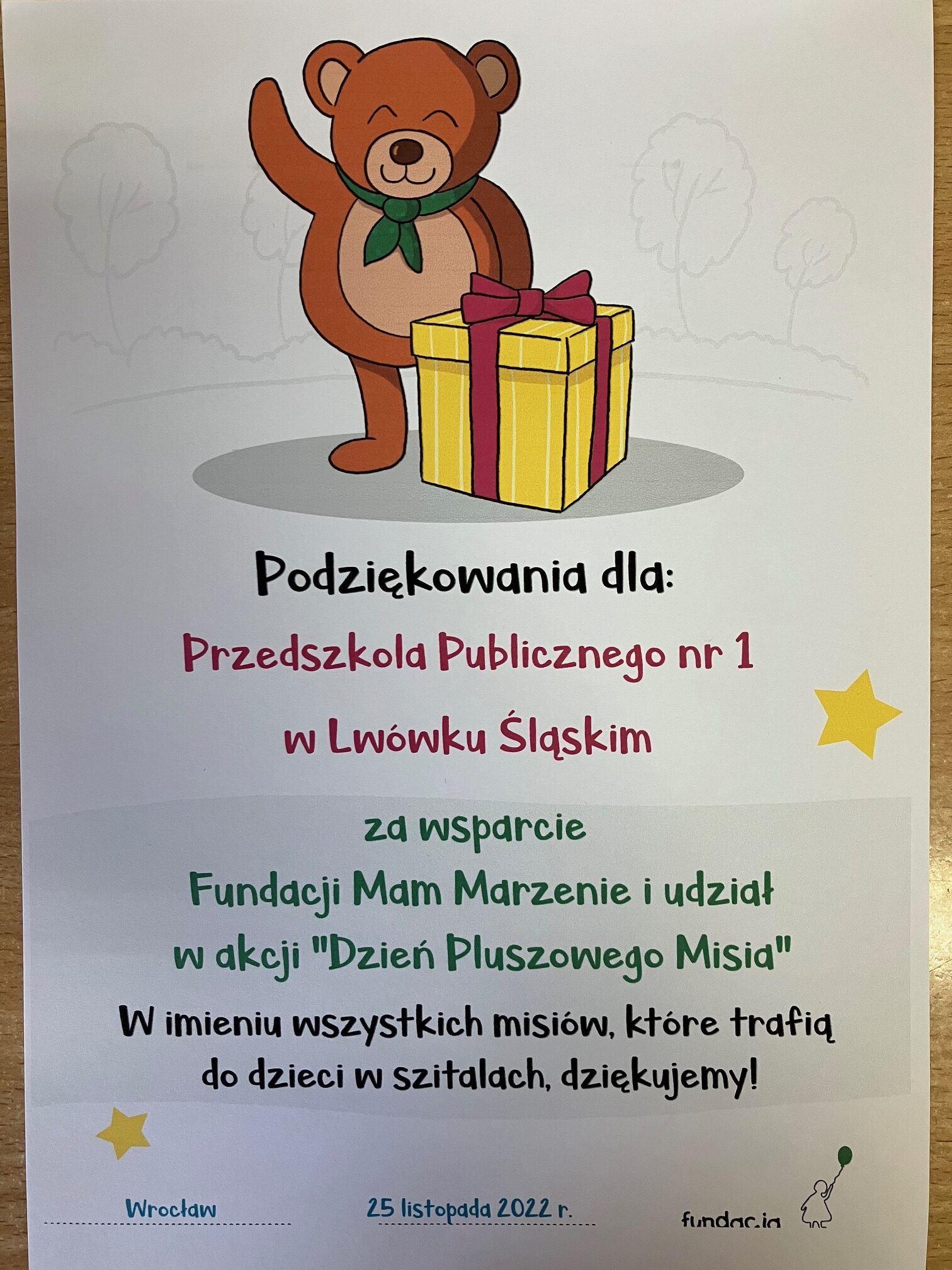 Serdecznie dziękujemy wszystkim rodzicom i dzieciom, którzy wzięli udział w akcji „Dzień Pluszowego Misia” organizowanej przez Fundacje Mam Marzenie.