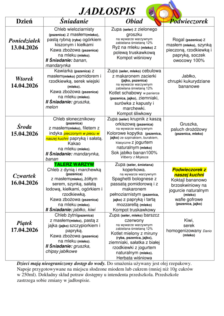 SUBSTANCJE LUB PRODUKTY POWODUJĄCE ALERGIE LUB REAKCJE NIETOLERANCJI