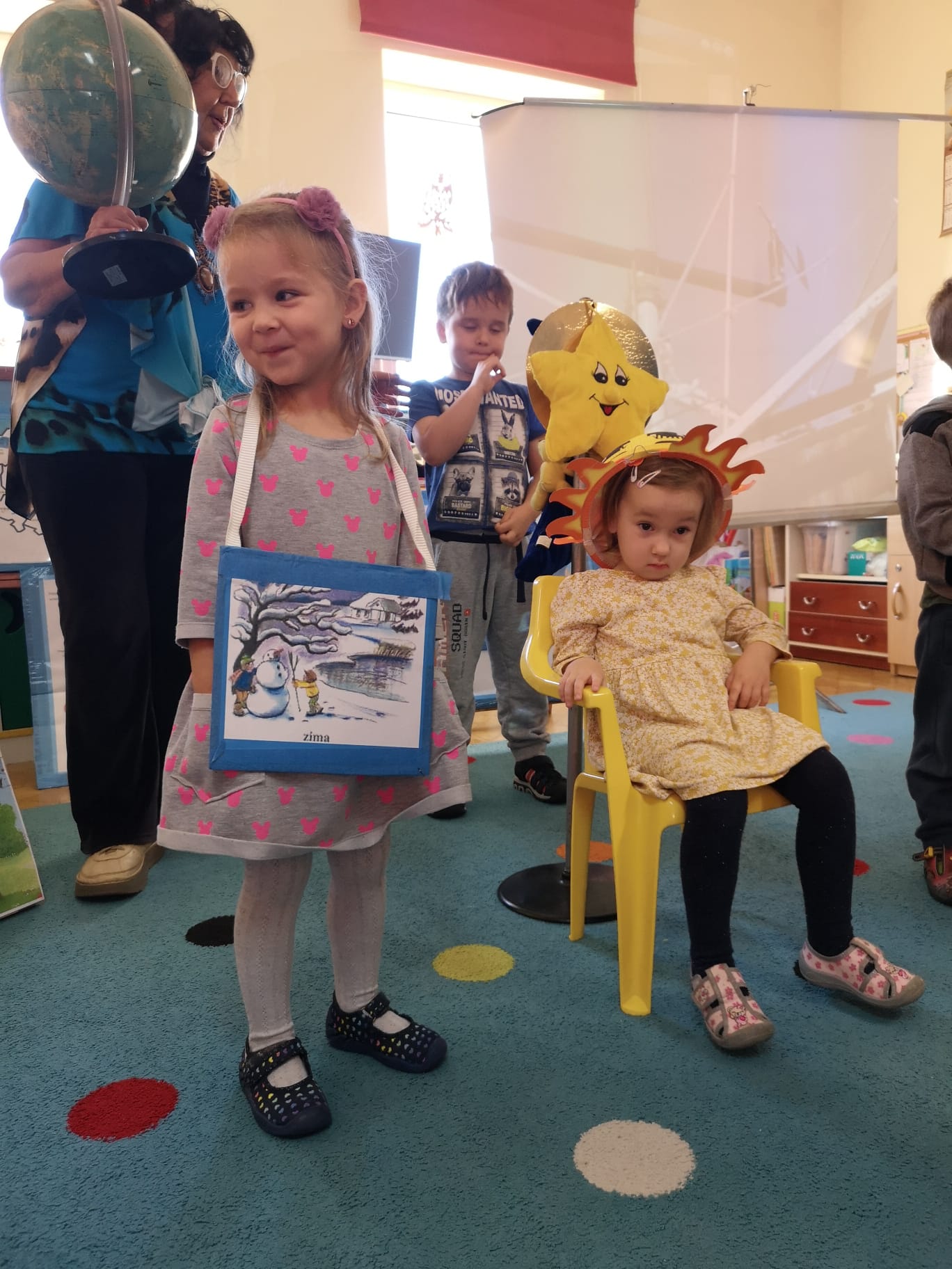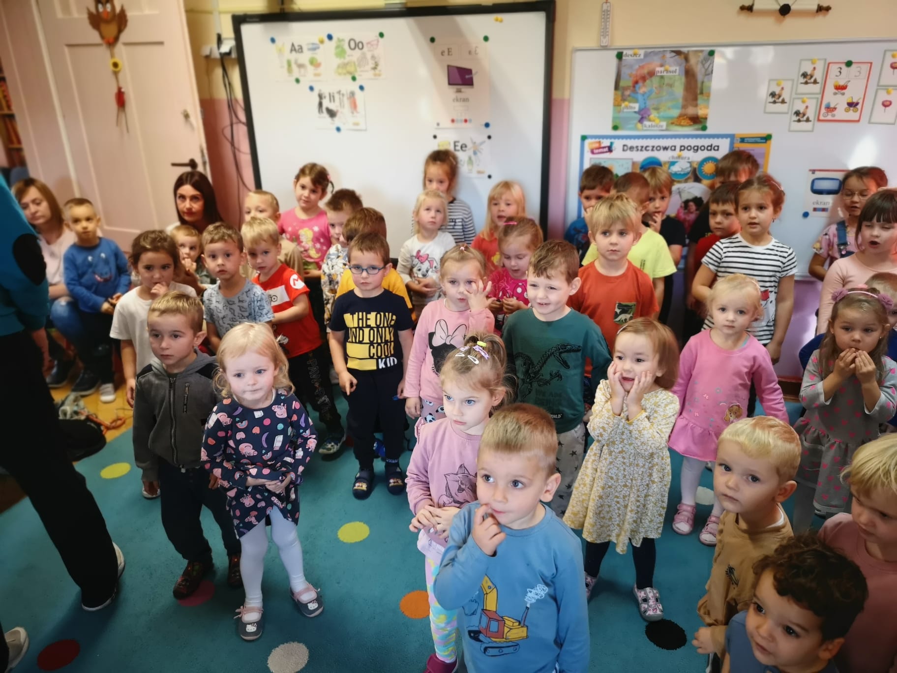 Dnia 25.10.2022r. odbyła się prelekcja pt.:” Przedszkolak – badaczem meteorologiem”. Dzieci podczas tego widowiska poznały elementy pogody: słońce, deszcz, wiatr, grad.